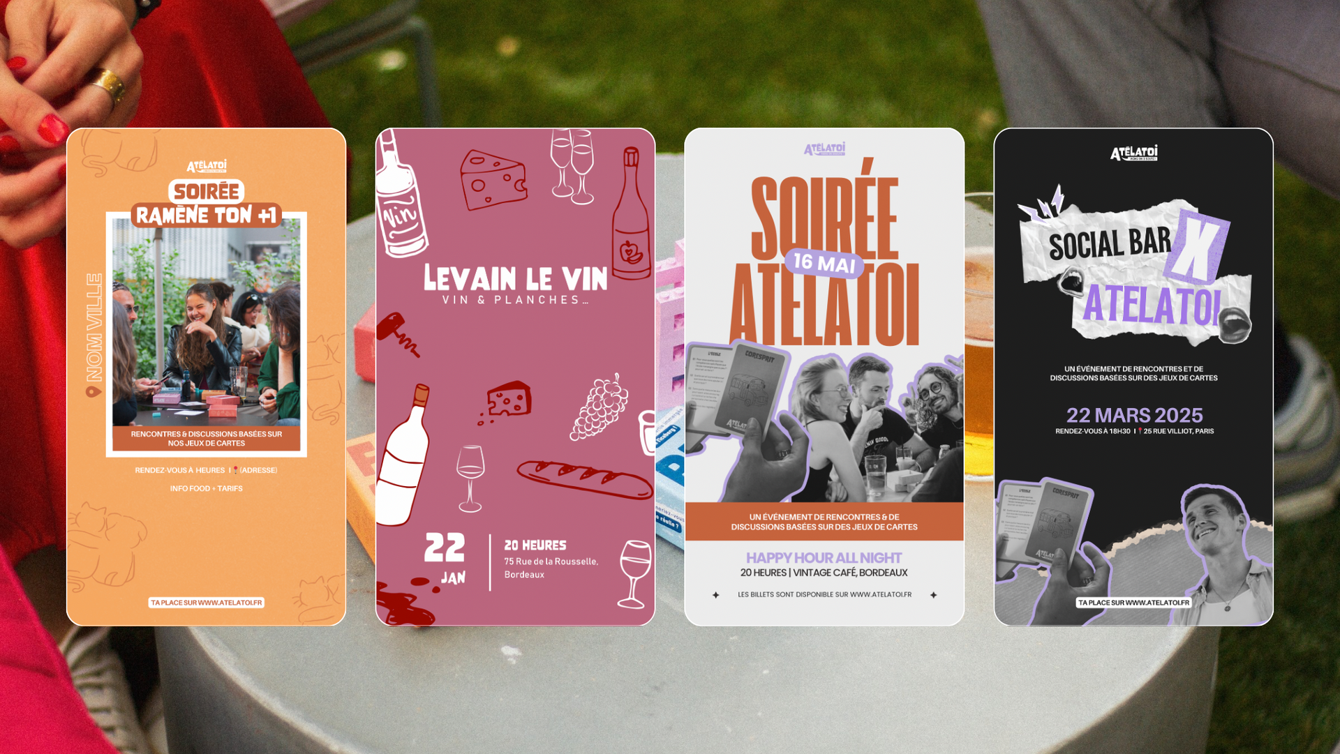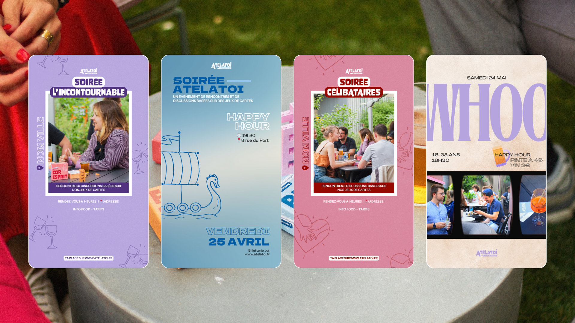 Depuis plus de 2 ans, nous accompagnons depuis son lancement : Atélatoi, un concept de rencontres et de discussions en plein expansion. Aujourd’hui, c’est 10 événements par mois, dans différentes villes de France, 4 jeux disponibles à la ventes et plus de 3000 participants.