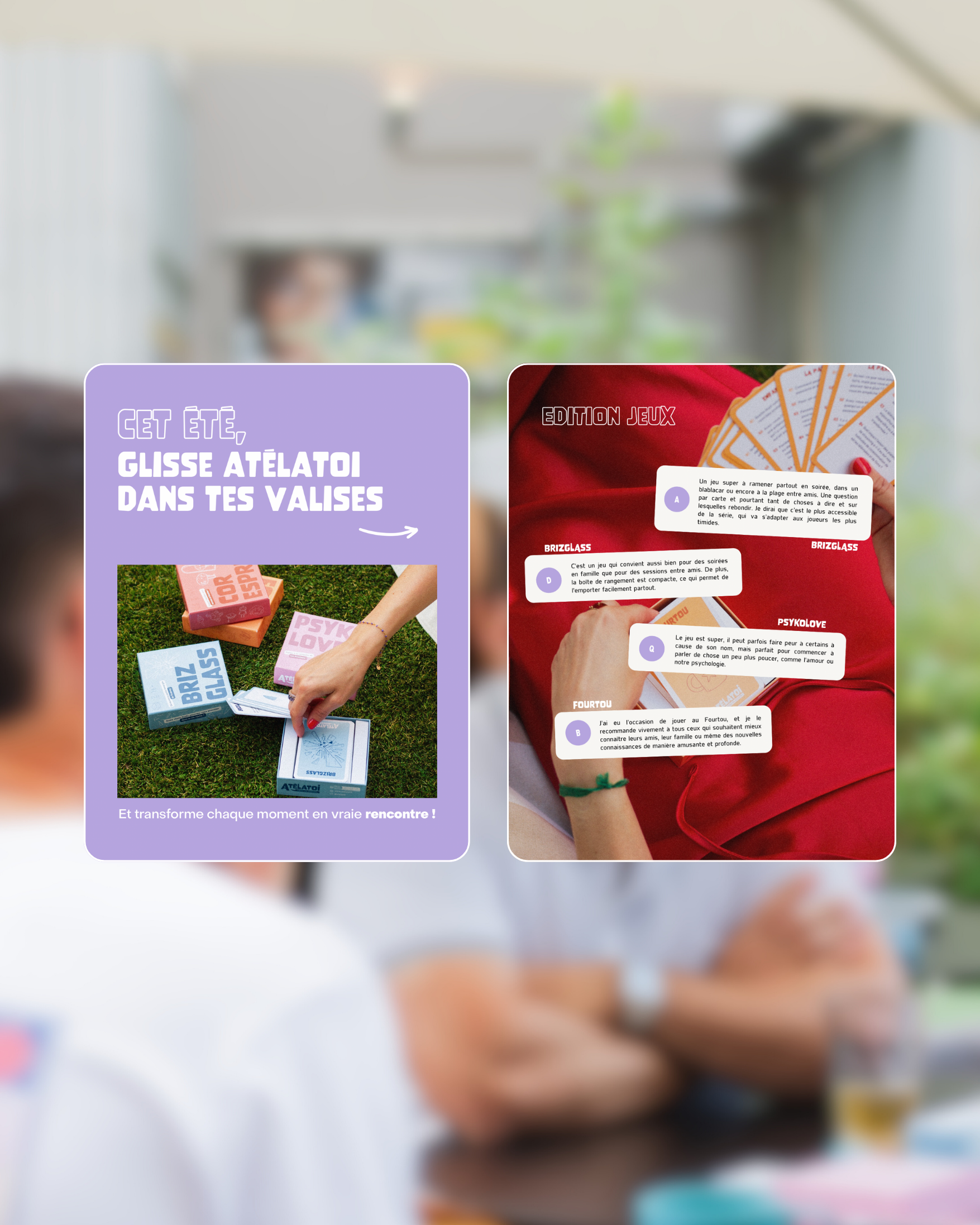 captiver et engager leur communauté. Ces contenus vont du teasing d’événements à des capsules créatives qui reflètent les valeurs, l’énergie et la vision d’Atélatoi, tout en renforçant son image de marque sur les réseaux sociaux.